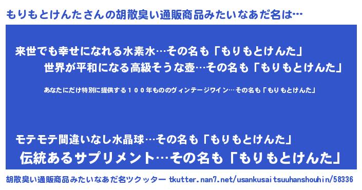 | 意味不明あだ名 | 『住所不定無職もりもとけんた(7歳)』 |