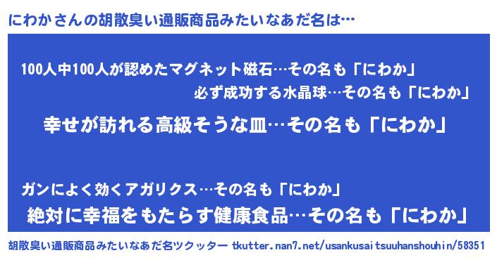 | 男性向けラノベタイトル風あだ名 | 『緋弾のニワカ』『にわかの憂鬱』 |