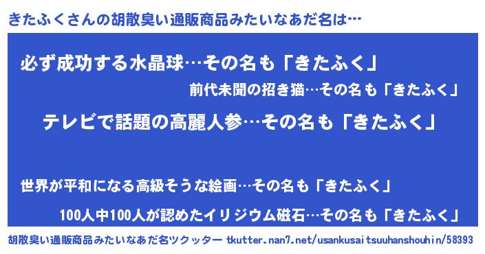 | ヘコむあだ名 | 『きたふぇ~』『きたふく(爆)』 |