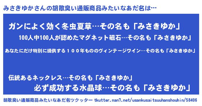 | 意味不明あだ名 | 『住所不定無職みさきゆか(3歳)』 |