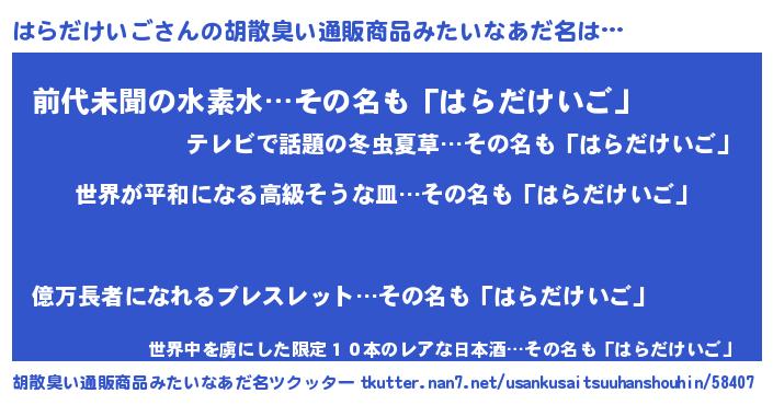| ヒーロー風カッコイイあだ名 | 『ウルトラはらだけいごマン』 |