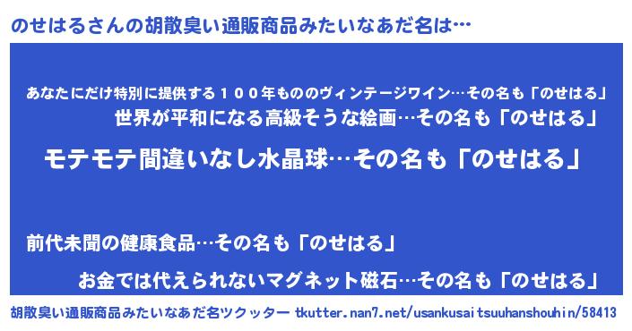 | ヘコむあだ名 | 『のせにゅー』『豆乳』『のせお』 |