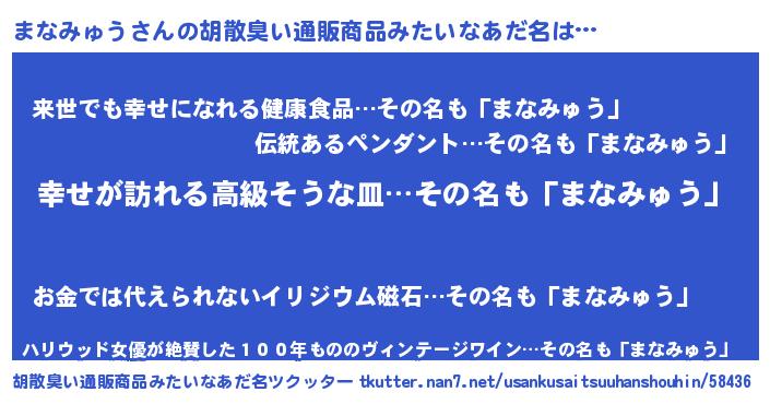 | 意味不明あだ名 | 『めかぶ科まなみゅう属』 |