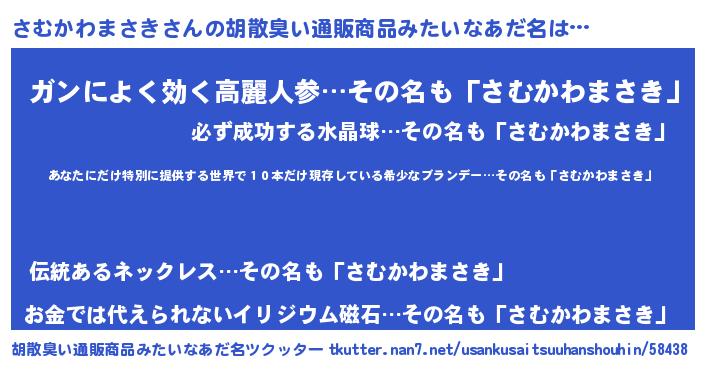 | ヘコむあだ名 | 『さむもー』『さむお』『なまこ酢』 |
