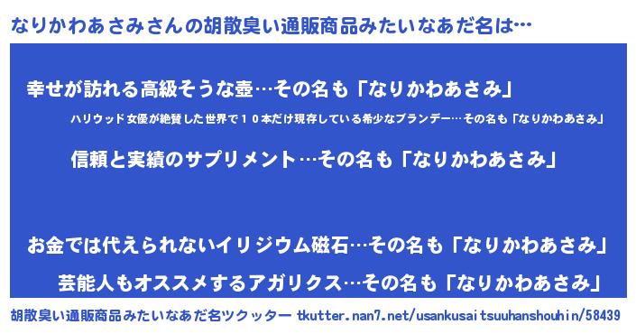 | 意味不明あだ名 | 『とにかく怪しいなりかわあさみ』 |