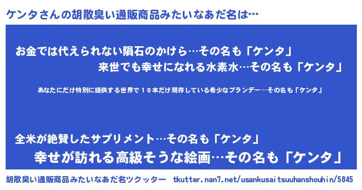| 意味不明あだ名 | 『住所不定無職ケンタ(91歳)』 |