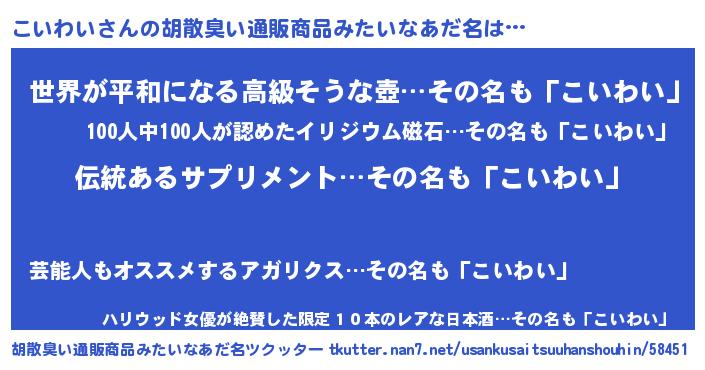 | 意味不明あだ名 | 『とにかく怪しいこいわい』 |