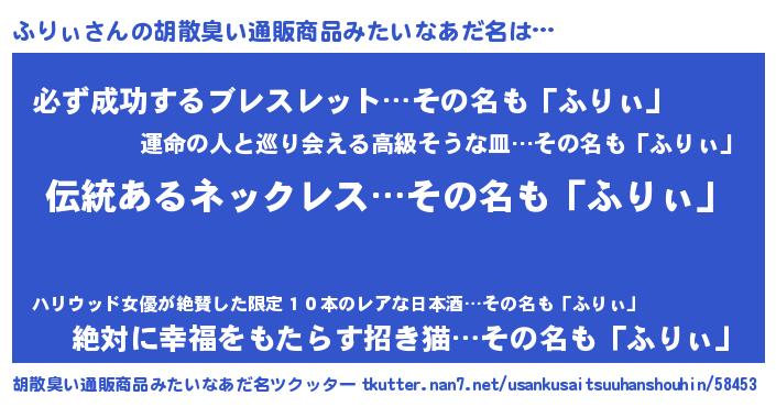 | 意味不明あだ名 | 『とにかく怪しいふりぃ』 |