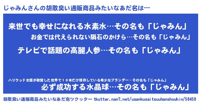 | ヘコむあだ名 | 『じゃみん(小並感)』『じゃもー』 |