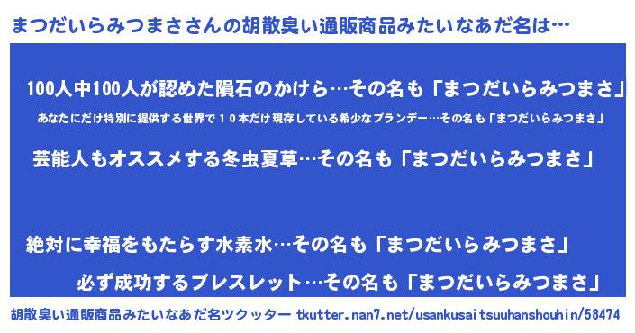 | 肩書あだ名 | 『まつだいらみつまさ総統』 |