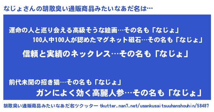 | 意味不明あだ名 | 『とにかく怪しいなじょ』『自称なじょ』 |