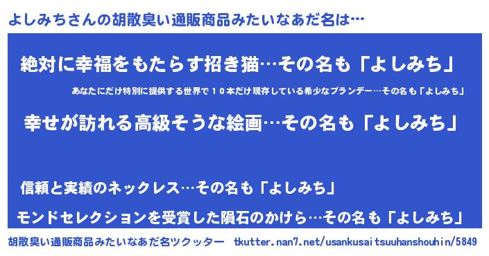 | ファンタジー風あだ名 | 『エターナルヨシミチー』『クインヨット』 |