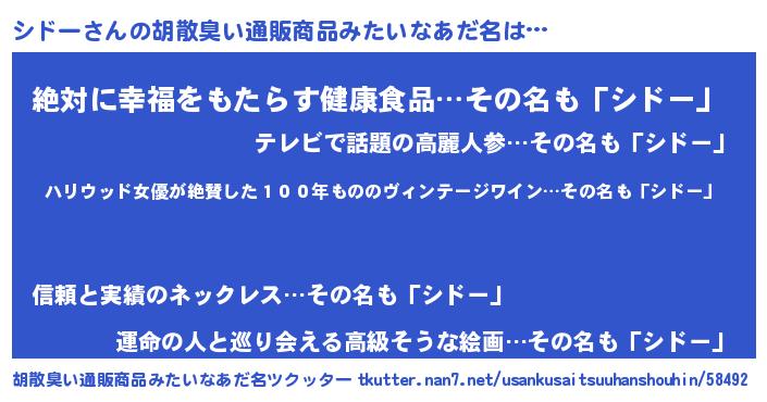 | 意味不明あだ名 | 『住所不定無職シドー(4歳)』『自称シドー』 |