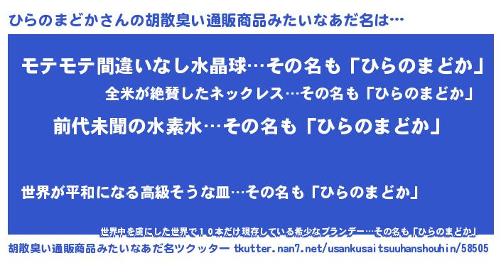 | 恥ずかしいあだ名 | 『ひらちん』『プリティーひらのまどか』 |