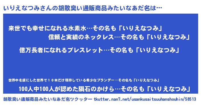 | ヘコむあだ名 | 『いりふぇ~』『いりえなつみ(苦笑)』 |