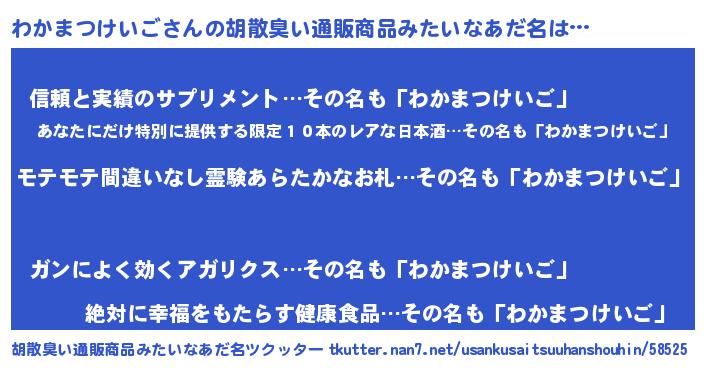 | 伝説のあだ名 | 『不死鳥のスナイパーわかまつけいご』 |
