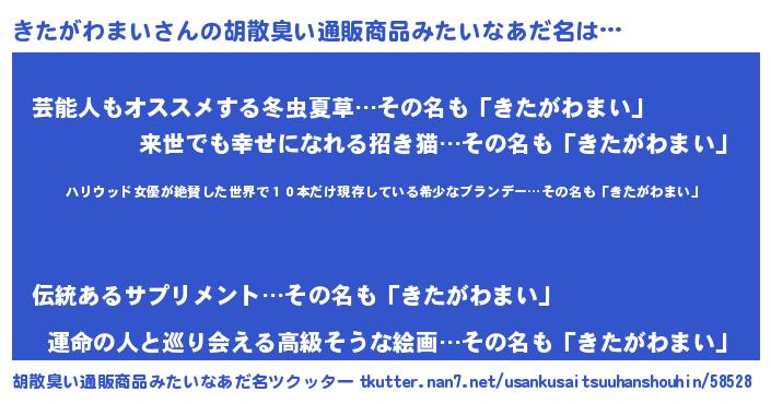 きたがわまいさんの胡散臭い通販商品みたいなあだ名をツクッター!