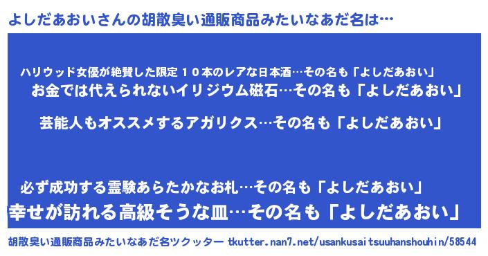 | 肩書あだ名 | 『よしだあおい大尉』『よしだあおい閣下』 |