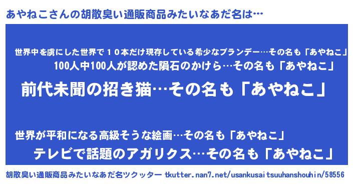 | ヘコむあだ名 | 『あやねこ(小並感)』『つくし』 |