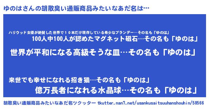 | 意味不明あだ名 | 『ゆのはフォーエバー』『ペロリンゆのは』 |