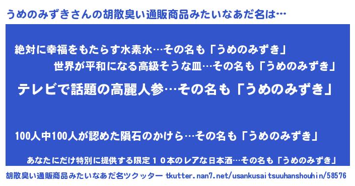 | 意味不明あだ名 | 『自称うめのみずき』 |
