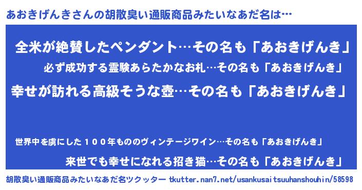 | 意味不明あだ名 | 『あおきげんきフォーエバー』 |