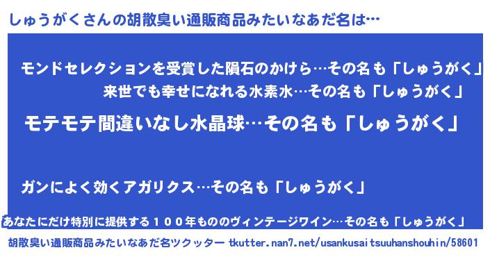 | ヒーロー風カッコイイあだ名 | 『スーパーシュウガク』『仮面シュダー』 |