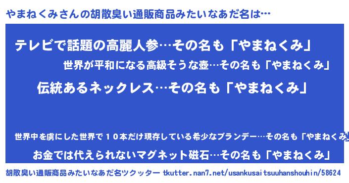 | 欧米人風あだ名 | 『ウサインやまねくみ』 |