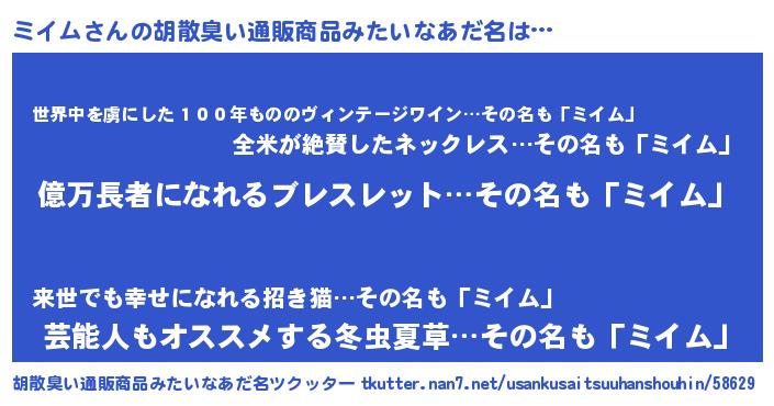 | 意味不明あだ名 | 『ペロリンミイム』『自称ミイム』 |