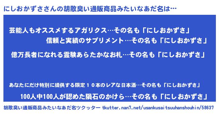 | 恥ずかしいあだ名 | 『プリティーにしおかずさ』『にしっちょ』 |