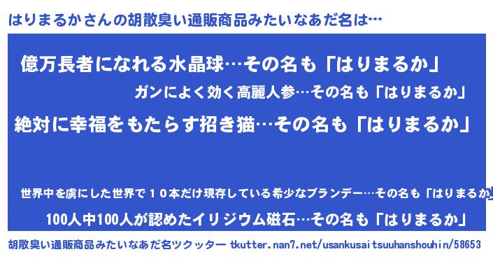 | ヘコむあだ名 | 『はりまるか(小並感)』『はりにゅー』 |
