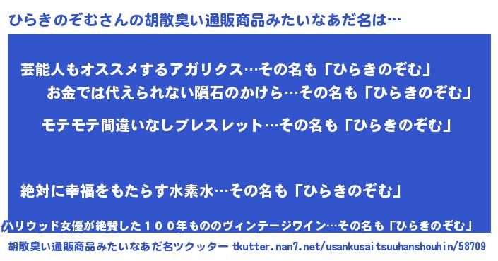 | ヘコむあだ名 | 『ひらふぇ~』『ひらきのぞむ(震え声)』 |