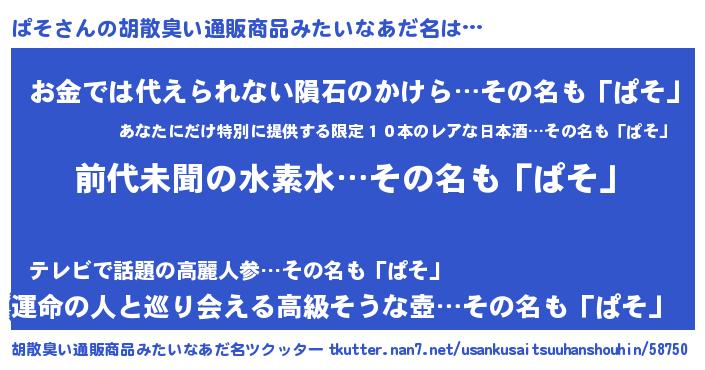 | 恥ずかしいあだ名 | 『ぱそちん』『ボンバーヘッドぱそ』 |