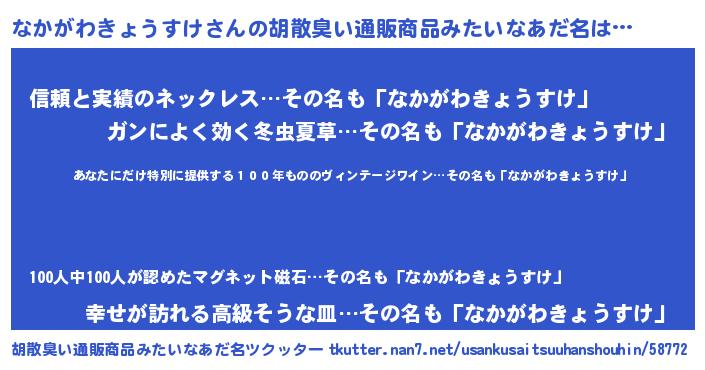 | 意味不明あだ名 | 『住所不定無職なかがわきょうすけ(11歳)』 |