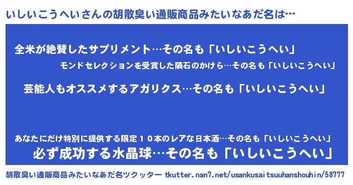 | 意味不明あだ名 | 『自称いしいこうへい』 |