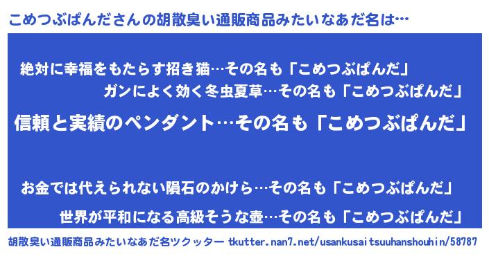 | 男性向けラノベタイトル風あだ名 | 『緋弾のコメツブパンダ』 |