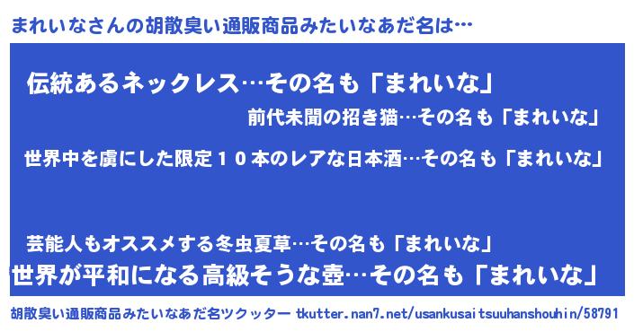 | 恥ずかしいあだ名 | 『マレリンリン』『まれっちょ』 |