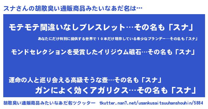 | ヒーロー風カッコイイあだ名 | 『慈愛の使者スナ』『スーパースナ』 |