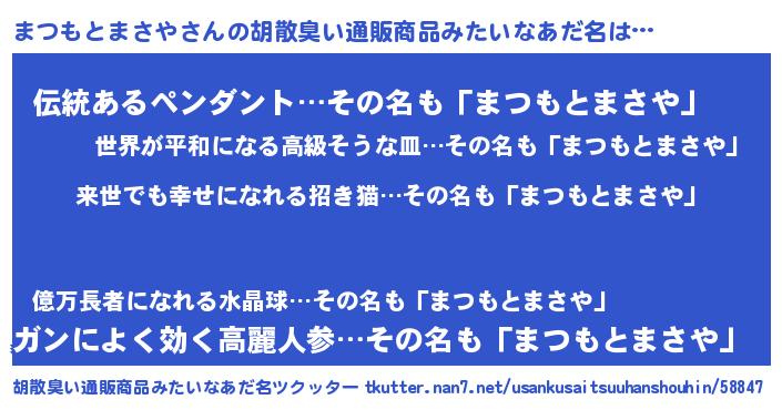 | 意味不明あだ名 | 『永久保存まつもとまさや』 |