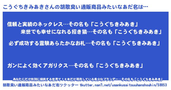| 伝説のあだ名 | 『伝説のスナイパーこうぐちきみあき』 |