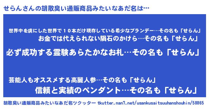 | 男性向けラノベタイトル風あだ名 | 『緋弾のセラン』『魔弾の王とせらん』 |