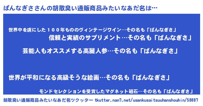 | 意味不明あだ名 | 『自称ばんなぎさ』 |