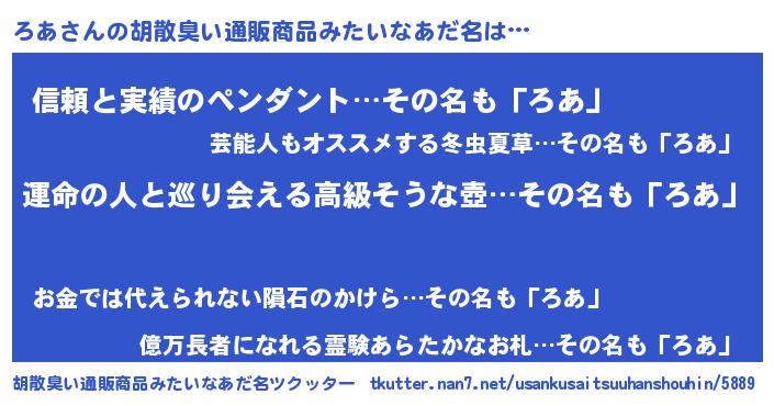 | ヘコむあだ名 | 『レバニラ』『ろあお』『ろあもー』 |