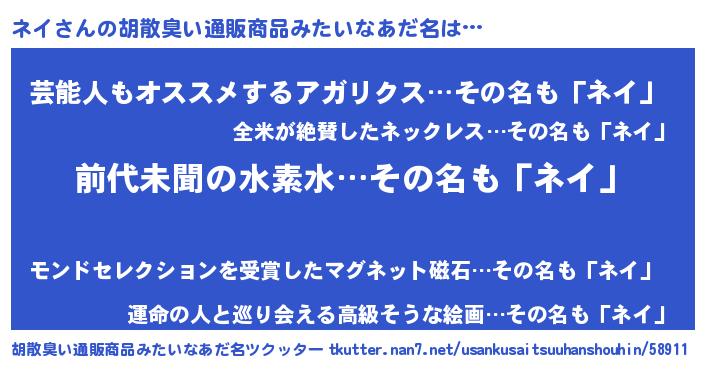 | 意味不明あだ名 | 『永久保存ネイ』『自称ネイ』 |