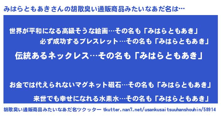 | 肩書あだ名 | 『みはらともあき班長』 |