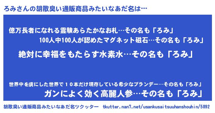 | ヘコむあだ名 | 『ろみ(震え声)』『ろみっふぃ~』 |