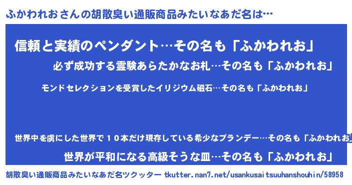 | 伝説のあだ名 | 『救世主となる占い師ふかわれお』 |