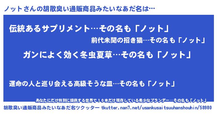 | ヘコむあだ名 | 『ノッっぺ』『ノット(小並感)』 |