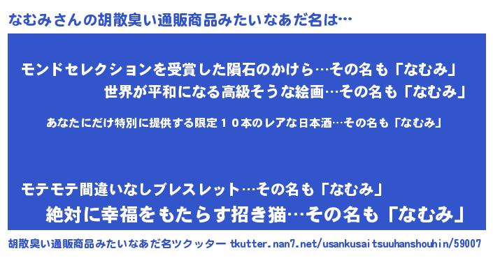 | ヒーロー風カッコイイあだ名 | 『仮面ナムダー』『慈愛の使者なむみ』 |