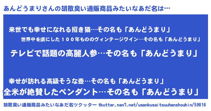 | 意味不明あだ名 | 『自称あんどうまり』 |